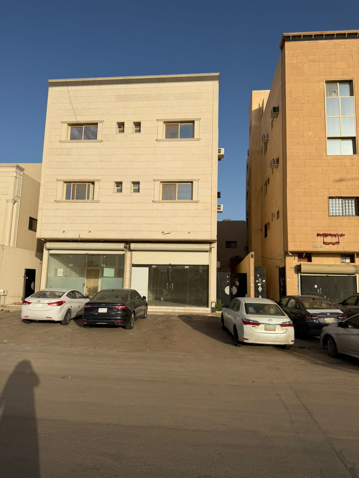 1 محل مساحة الواحد 9.60 متر بعمق 4.70م اجمالي المساحة 45 متر للمحل الواحد